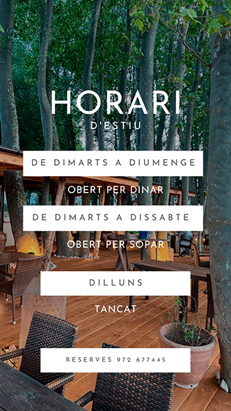 Enclavat en un entorn únic i natural, on fem una cuina de la zona. Amb productes de proximitat i de temporada.